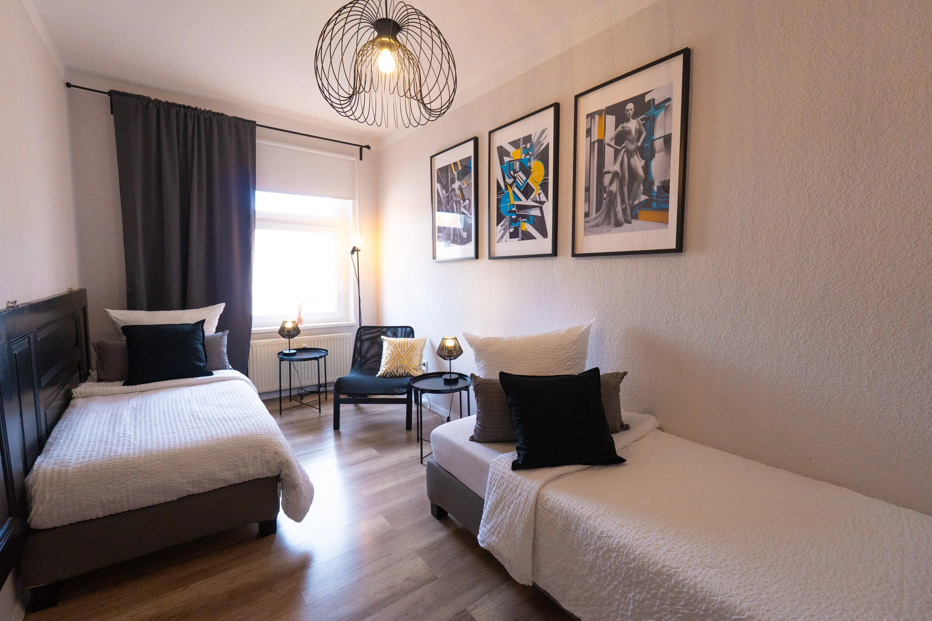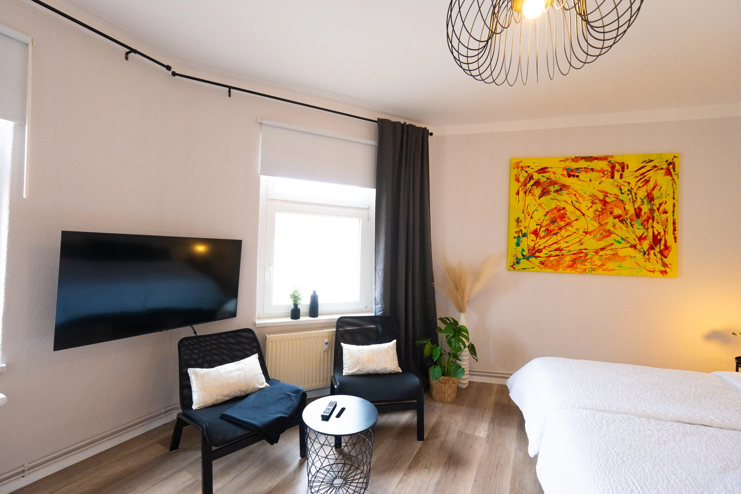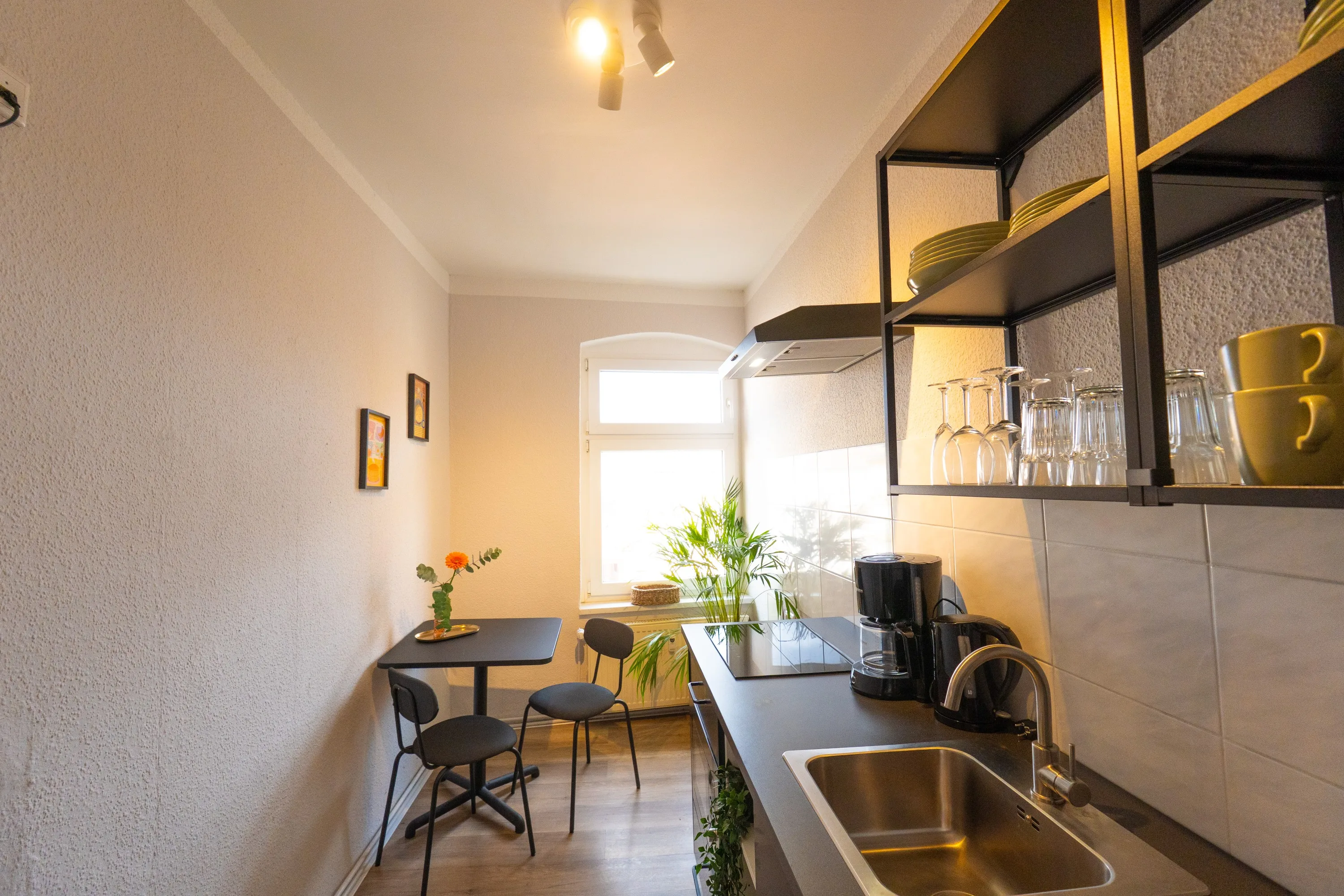 Wohnung war Stilvoll eingerichtet und die Betten sehr gut. Dazu alles geräumig gehalten. Fernseher hatte ein großes Bild. Und jedes Schlafzimmer hatte einen eigenen kleinen Schreibtisch. Dazu ein 2 Platten Induktionsfeld für die Küche. Die Bahn fast vor der Tür bringt einen Einfach ins Zentrum von Berlin.